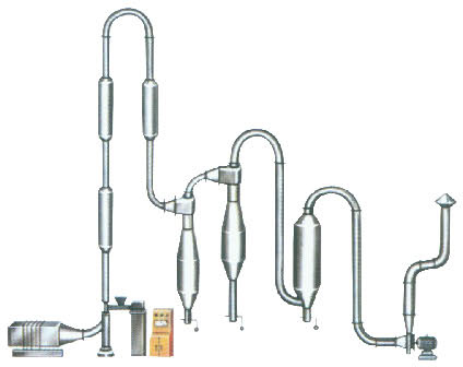 ◆ 具有分散作用的風機,特別適合熱敏物料的氣流干燥作業.高速飛旋的風機葉輪,能把濕的,甚至結塊的物料解碎,直至分散,在分散過程中同時攪拌,混合,然后物料和熱氣流平行地流動.這種類型的設備,適應干燥濾餅結塊的,但還屬于表面水份的物料,含濕量小于等于40%.如果處理量大或者成品要求干至15%以下時,可采用二級氣流干燥.當物料含濕量超過40%時,但小于等于60%時,進料較困難,應采用混料器,通過混進干料的方法以降低進料水份,此時,干燥設備的總產量就有較大幅度的下降,這在經濟上是不合算的.因此,用戶應先用機械的方法(離心脫水或壓濾)盡可能的降低進料水份,以確保干燥作業的順利進行。